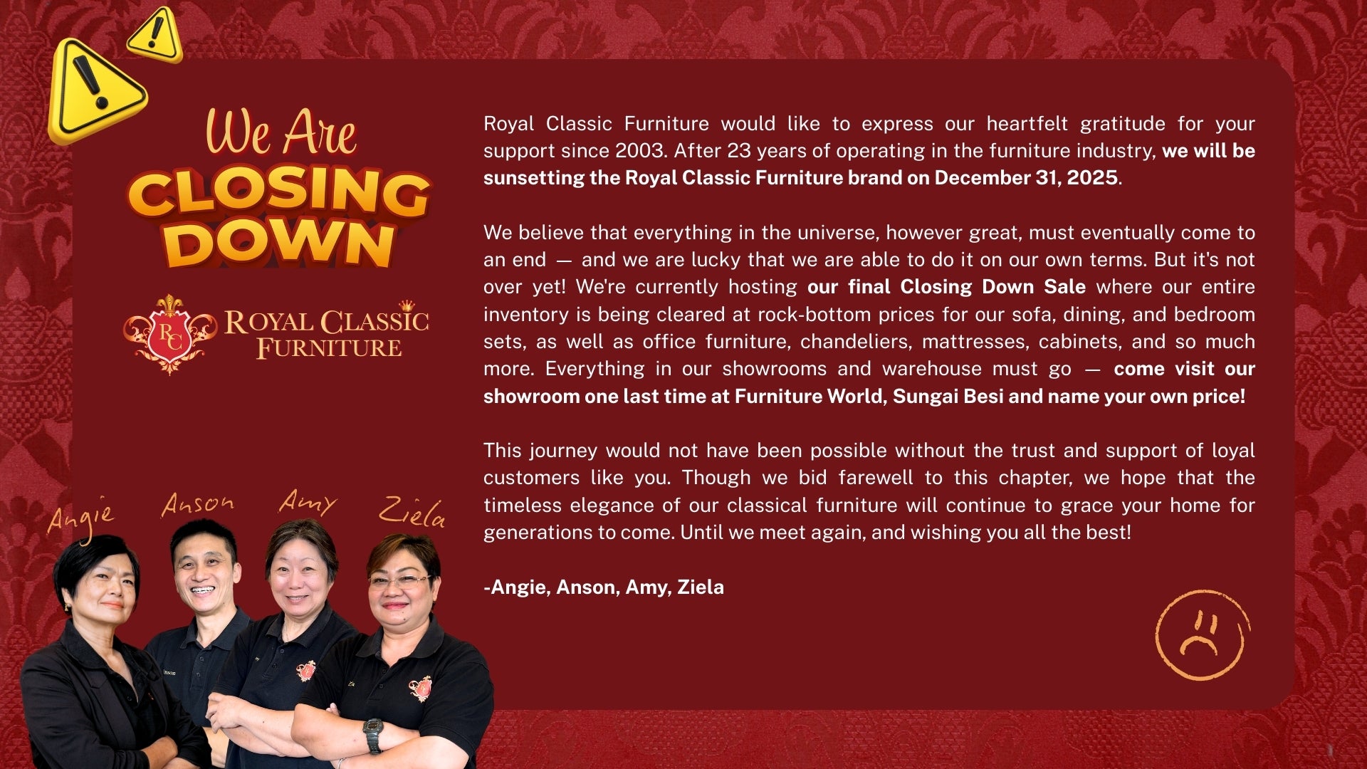 Our LAST DAY is 31 Dec 2025 - thank you for your support since 2003