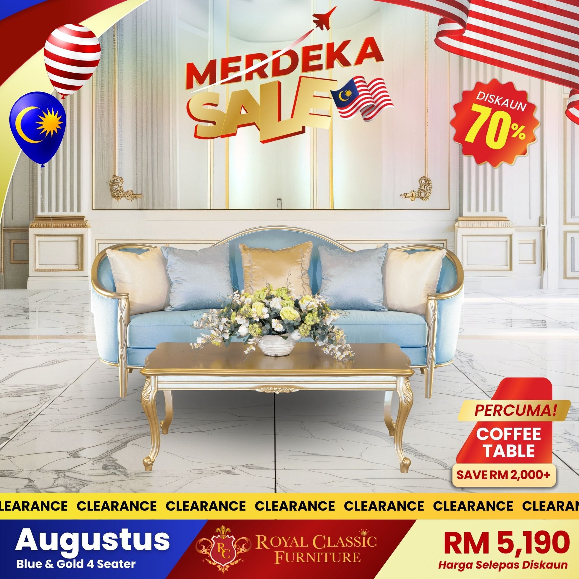 Bawa rasa kelembutan dan cahaya ke dalam rumah anda dengan Sofa 4-Seater AUGUSTUS . Dilapisi dalam rona biru muda yang halus dan dibingkai dengan aksen emas ringkas, AUGUSTUS menampilkan lengkungan licin dan siluet bersih yang membangkitkan keanggunan moden yang tenang dengan sentuhan klasik.